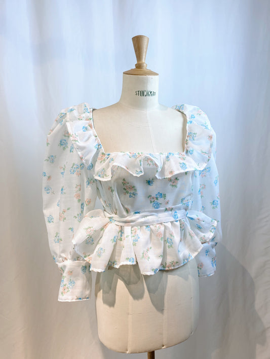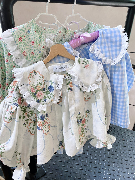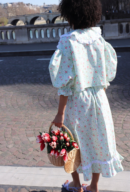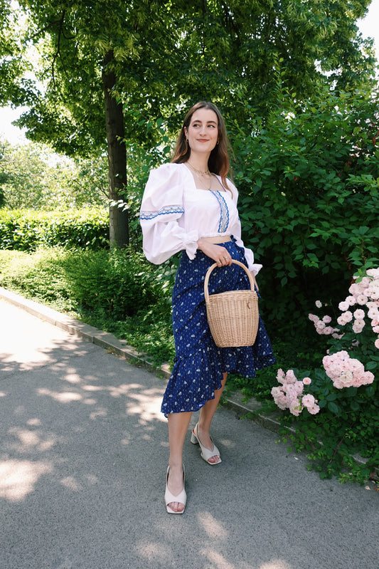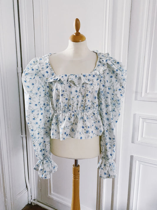 La douceur de @rebecka_wahl dans le haut Adèle en toile de Jouy bleue