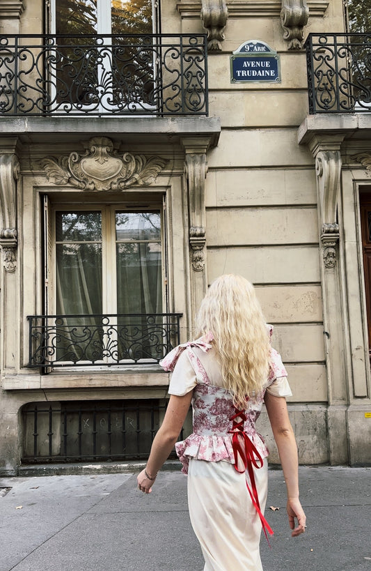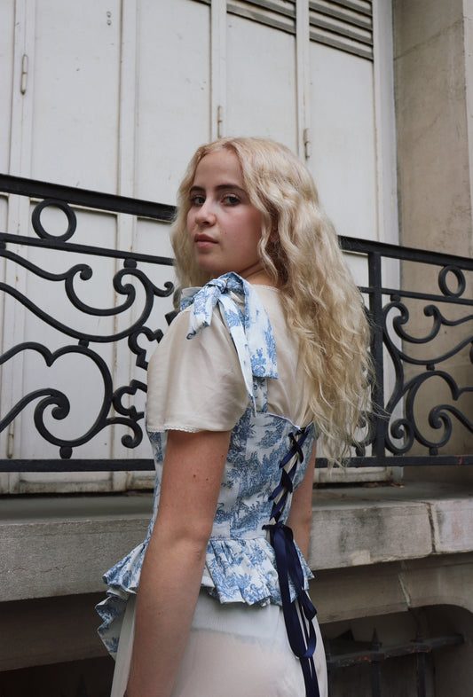 La douceur de @rebecka_wahl dans le haut Adèle en toile de Jouy bleue