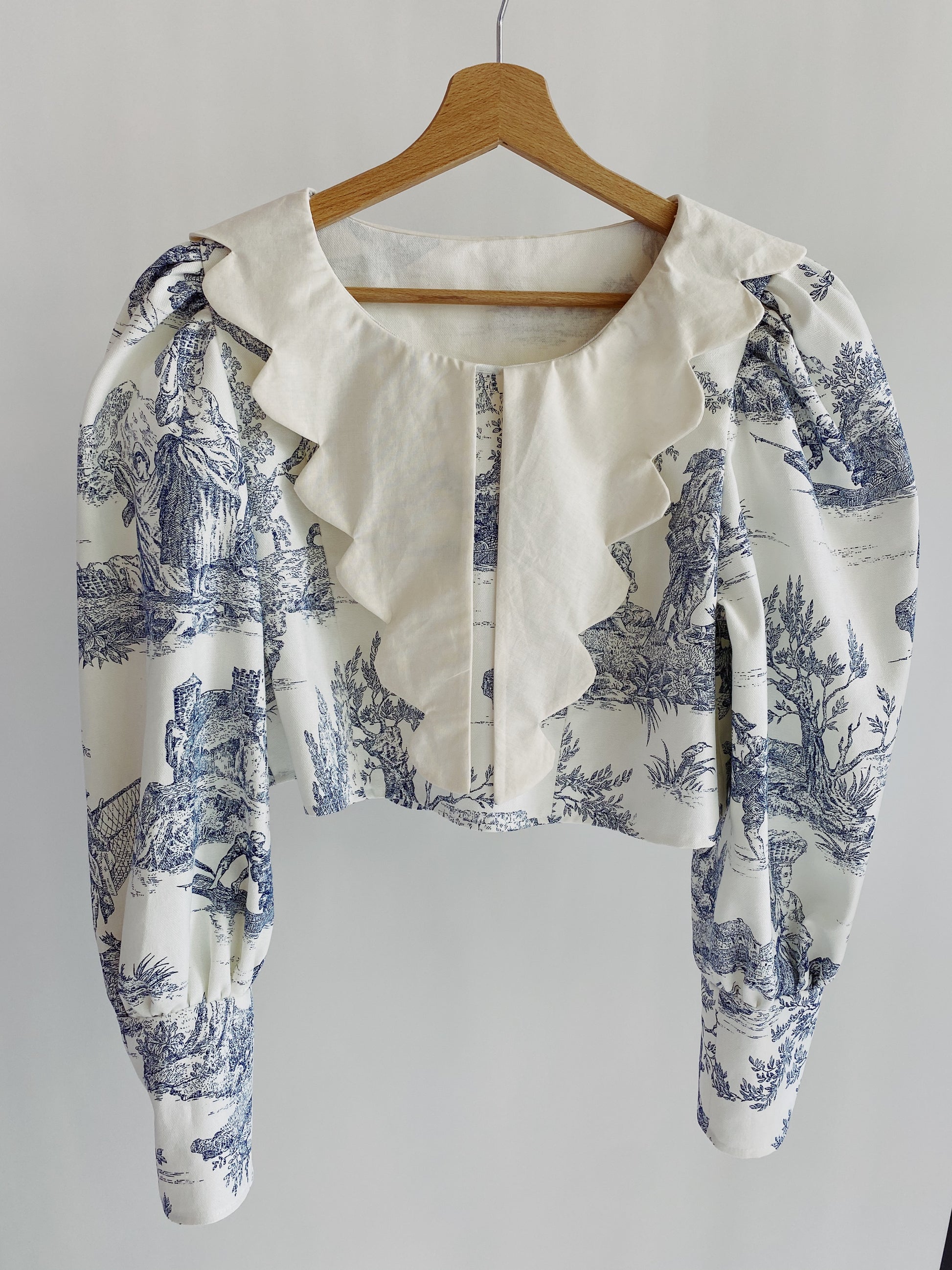 En hommage à Virginie Despentes, la blouse Virginie est une blouse à la coupe très moderne et romantique. Manches bouffantes, col festonné en coton beige.