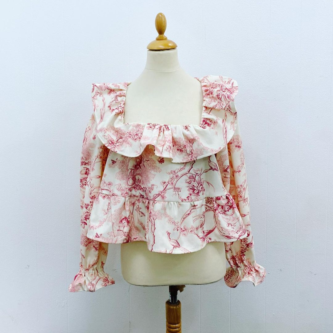 La douceur de @rebecka_wahl dans le haut Adèle en toile de Jouy bleue
