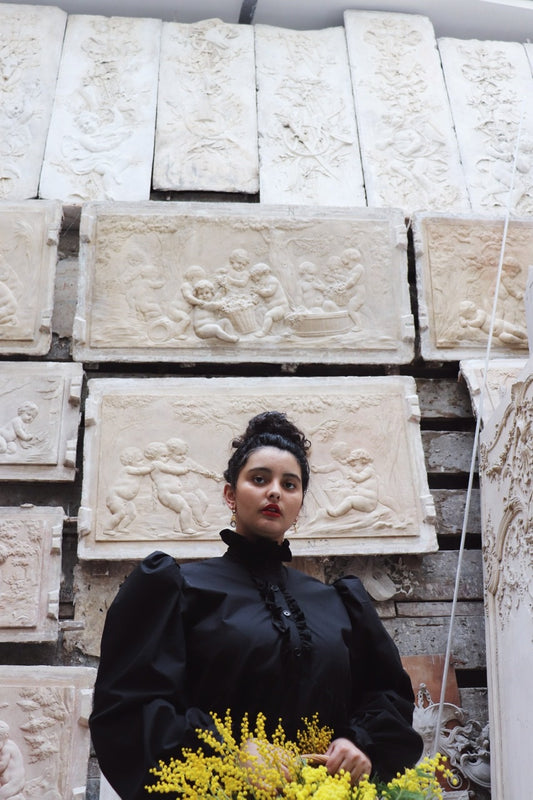 La belle @insia.hg photographiée par @beatricerigby porte la blouse Jacqueline