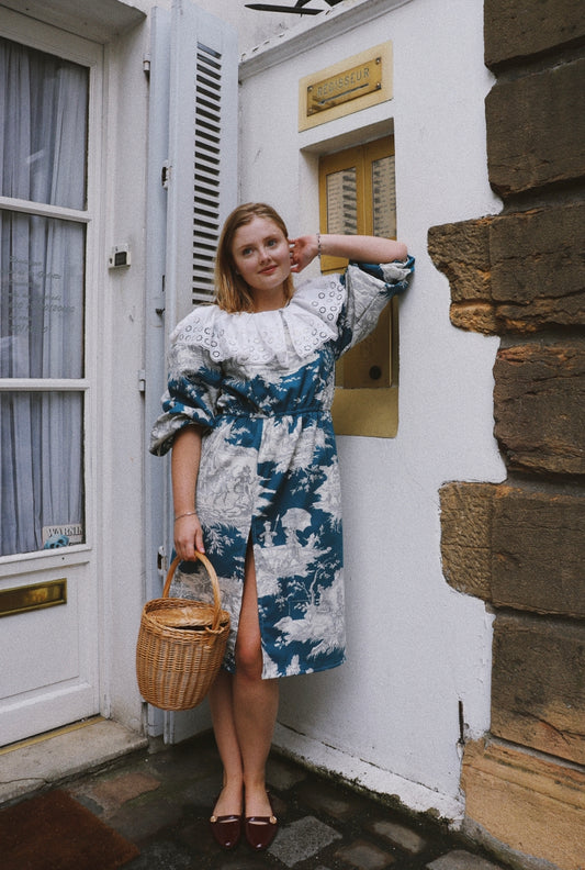 La douceur de @rebecka_wahl dans le haut Adèle en toile de Jouy bleue