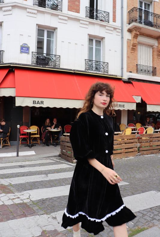 @cha.fitzgerald porte une robe en velours noir Studio Rosalie